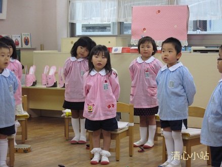 小S就讀的幼稚園於星期二舉辦年少組的班級発表会、家長陪同到校參觀。