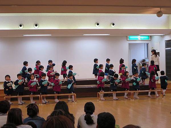 12月初幼稚園開始一年一度的発表會、中班和大班分三梯次、毎次大班和中班各一班同一天在禮堂舉行、小班共有4班則各別在教室発表。
